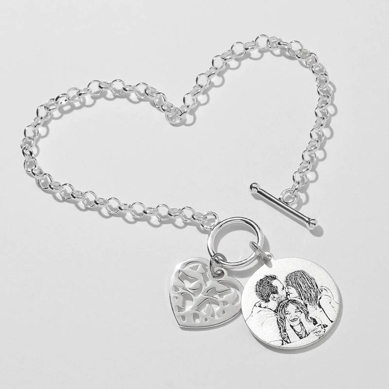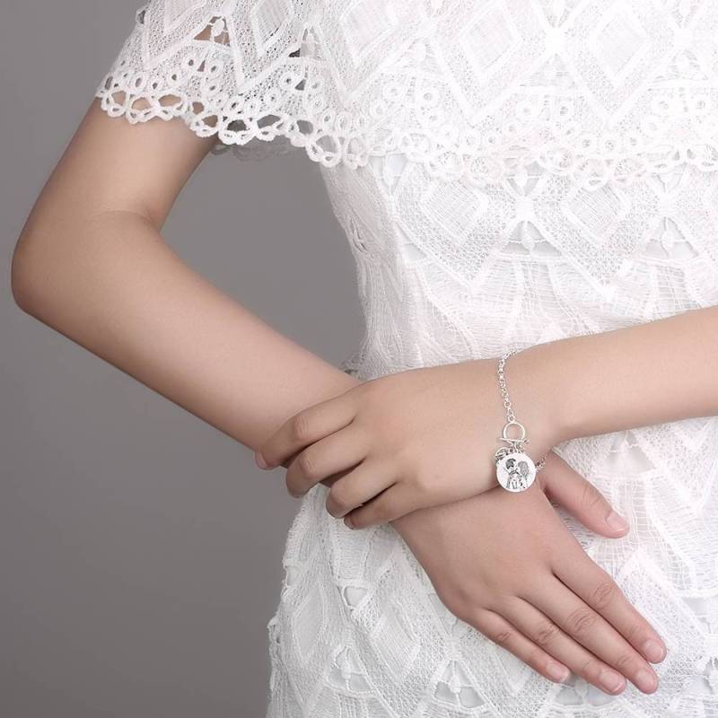 Women's Photo Engraved Tag Bracelet With Engraving Silver For Her
