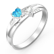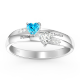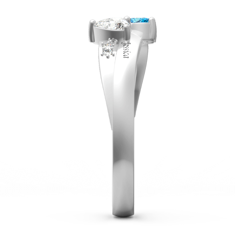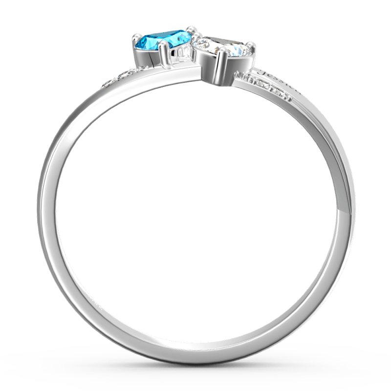 Silver Engraved Promise Ring With Double Heart Birthstone