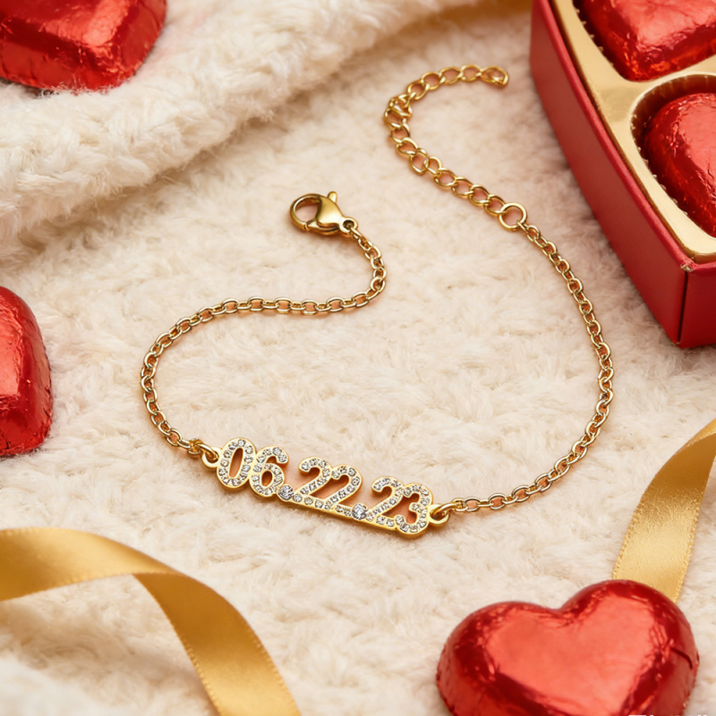Personalized Date Bracelet Custom Anniversary Date Bracelet for Her Minimalist Engraved Date Bracelet For Couple Gifts