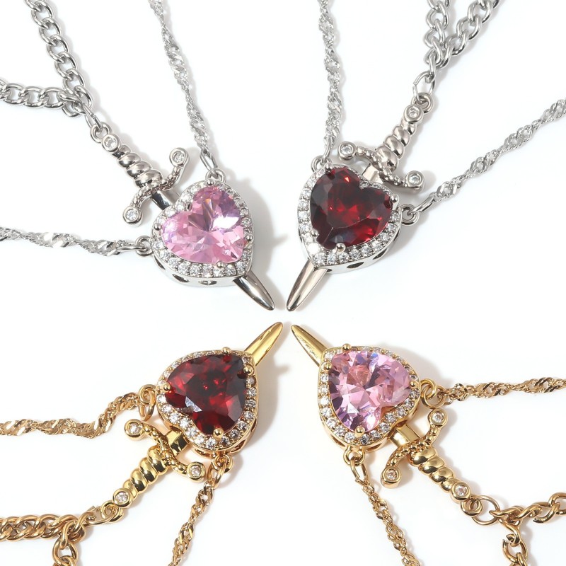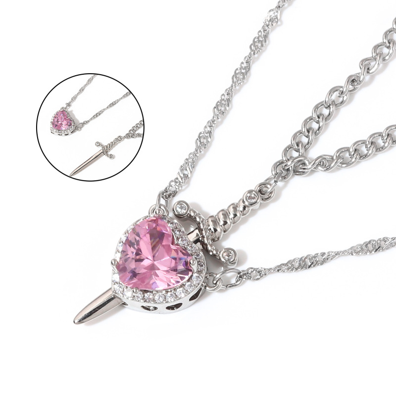 "Love's Pierce" Magnetic Heart & Sword Couple Necklace Set "One Heart, One Blade" Love Connection Necklaces