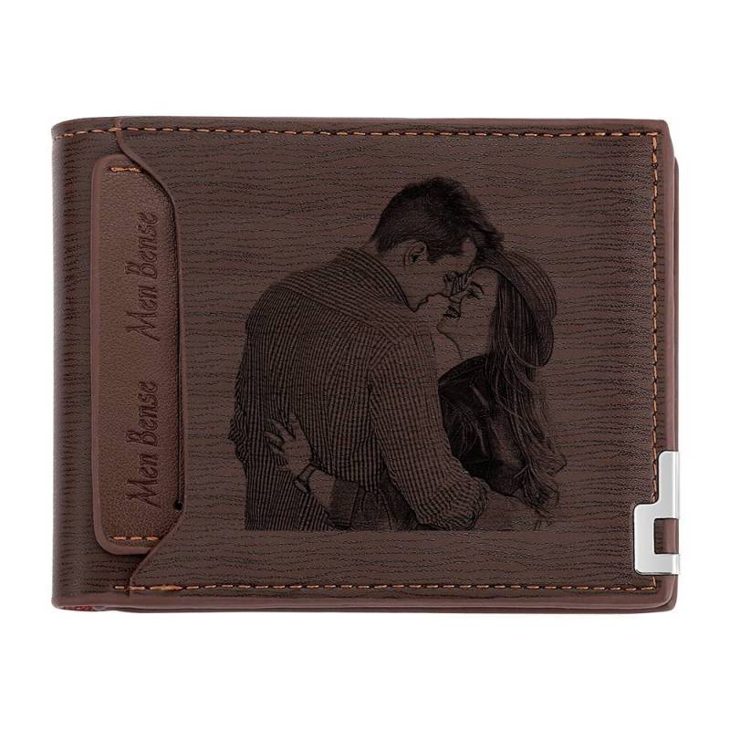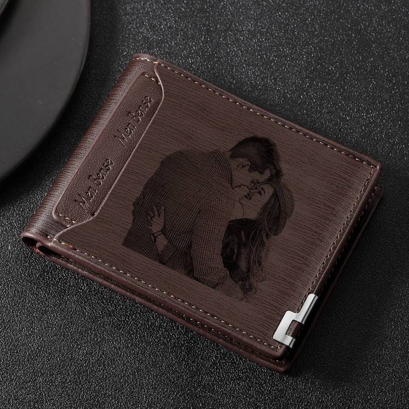 2021 Grad Gifts Engraved Short Style Photo Wallet - Light Brown Leather For Him