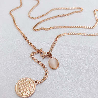 Alphabet Coin Cpal Necklace in Rose Gold Plated
