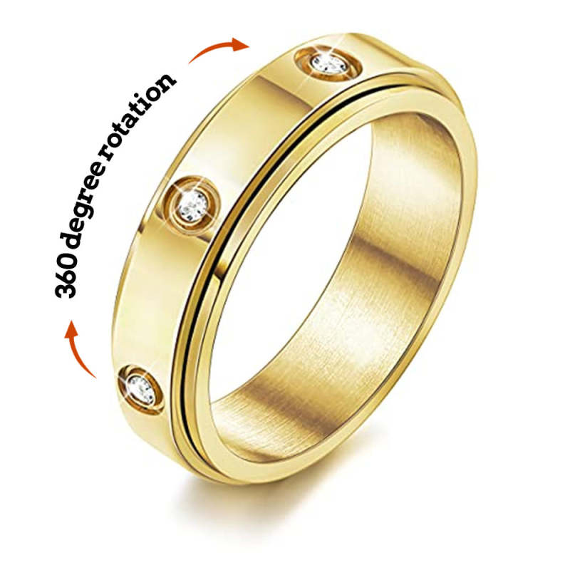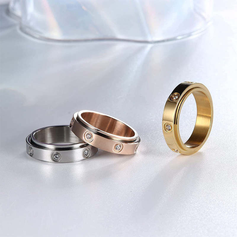 Anxiety Ring Anxiety Relief Diamante Decompression Stainless Steel Ring Jewelry Gift
