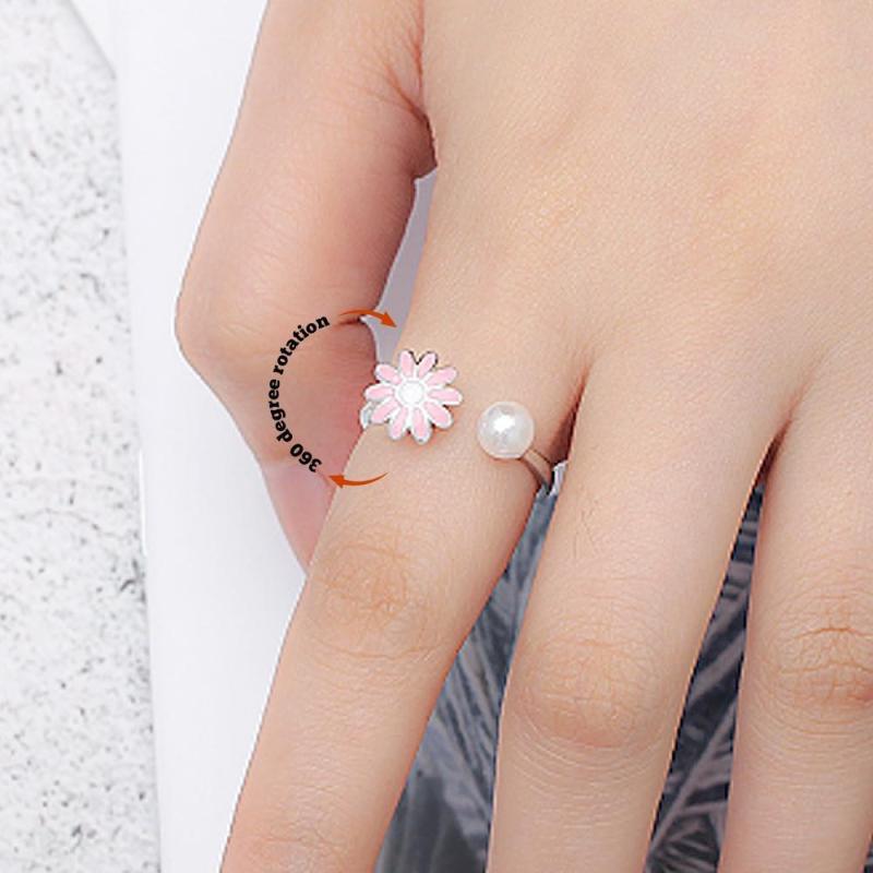 Anxiety Ring Rotating Daisy Flower Opening Ring Anniversary Birthday Gifts For Women Girls