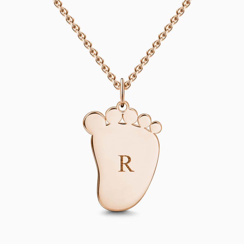 Baby Foot Initial Necklace With Engraving Rose Gold Plated Silver