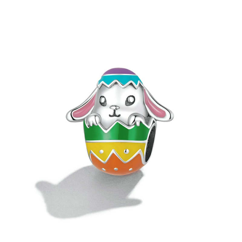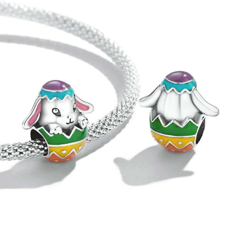 Bunny Easter Eggs Enamel Charm Silver Easter Gifts