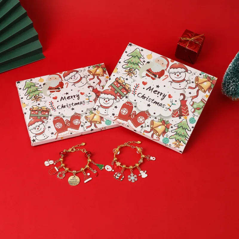 Christmas Charm Countdown Calendar Gift Box Set DIY Charm Jewelry Christmas Tree Bracelet Gift