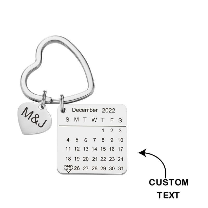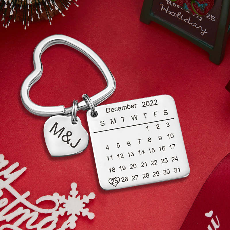 Christmas Gift Custom Engraved Calendar Keychain Heart Key Ring Save the Date Keychain