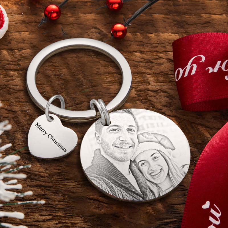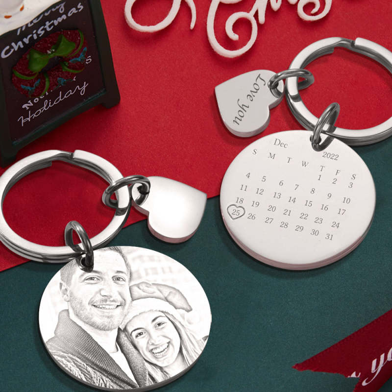 Christmas Gift Custom Photo Engraved Calendar Silver Keyring Key Chain