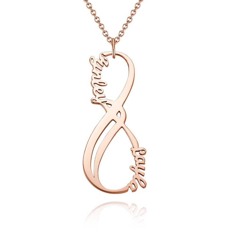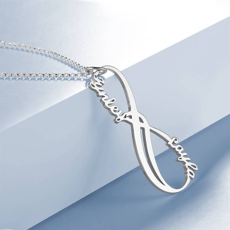 Personalized Vertical Infinity Two Name Necklace Silver Plated