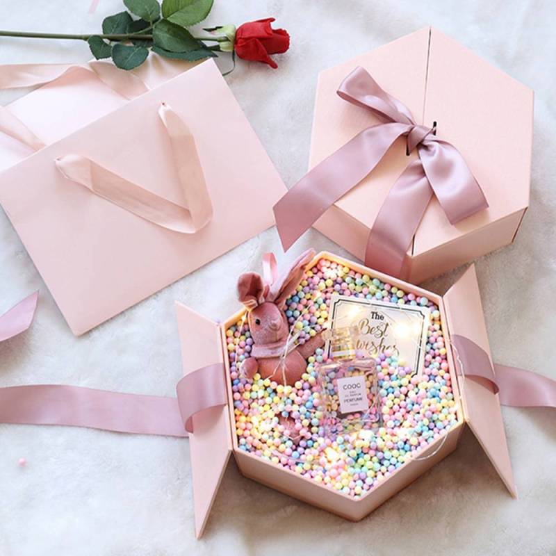 Colorful Bubble Hexagon Surprising Box Pink and Black
