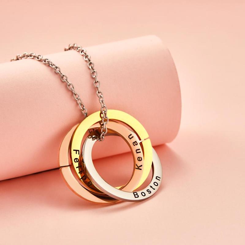 Mother's Day Gifts Custom 3 Circle necklace Russian Ring Necklace Stainless Steel