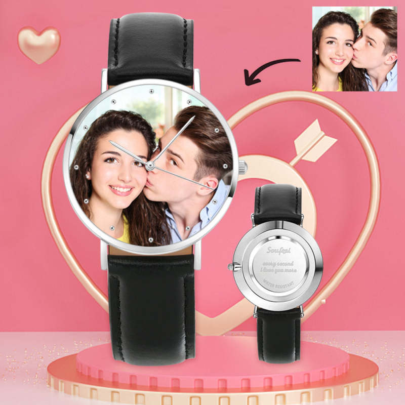 Personalized Engraved Photo Watch Black Strap