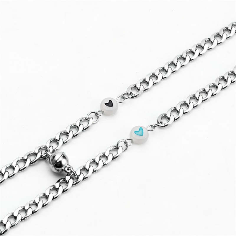 Couple Bracelet Magnet Stainless Steel Chain with Luminous Heart Birthday Gifts Lovers Boyfriend Girlfriend Him Her BFF 2 PCs