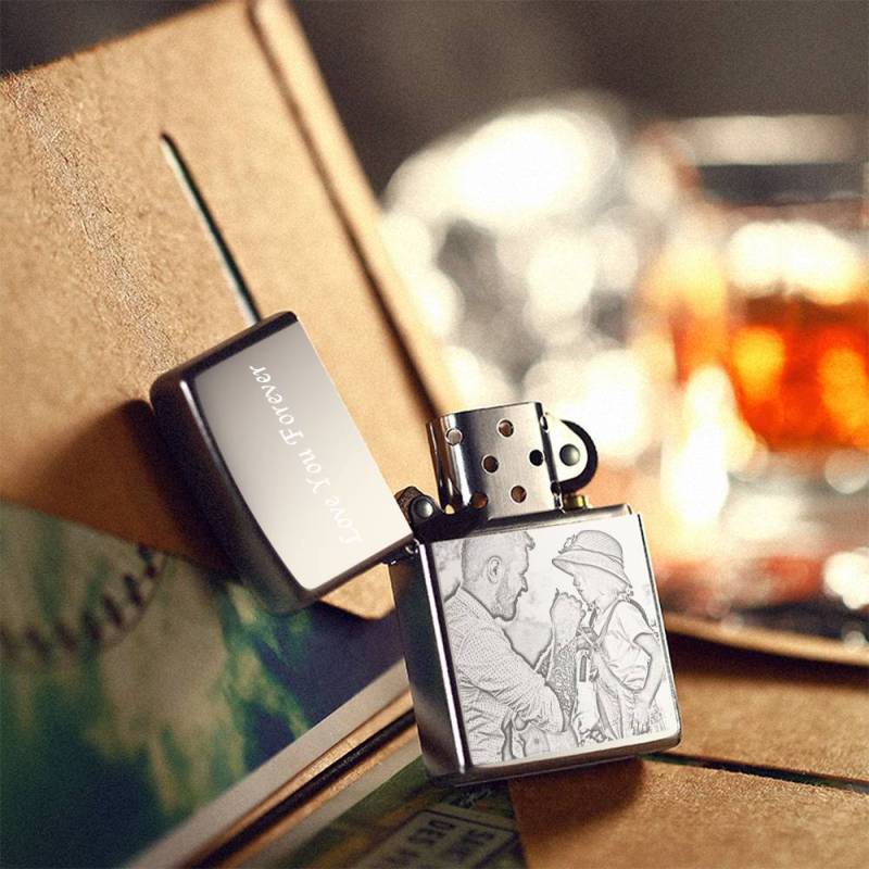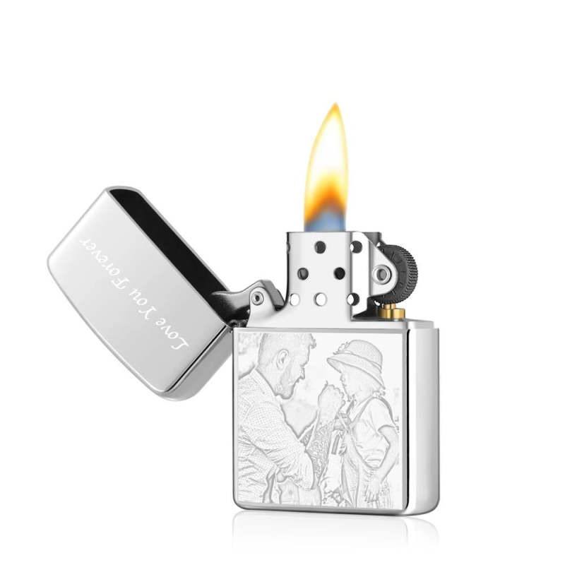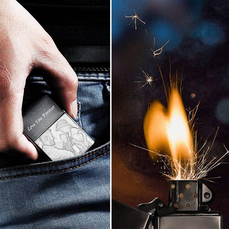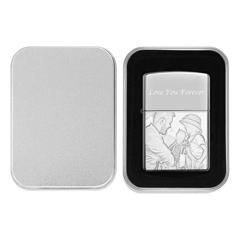 Creative Photo Engraved Lighter Personalized Gift For Dad - Silver (No Kerosene Included)