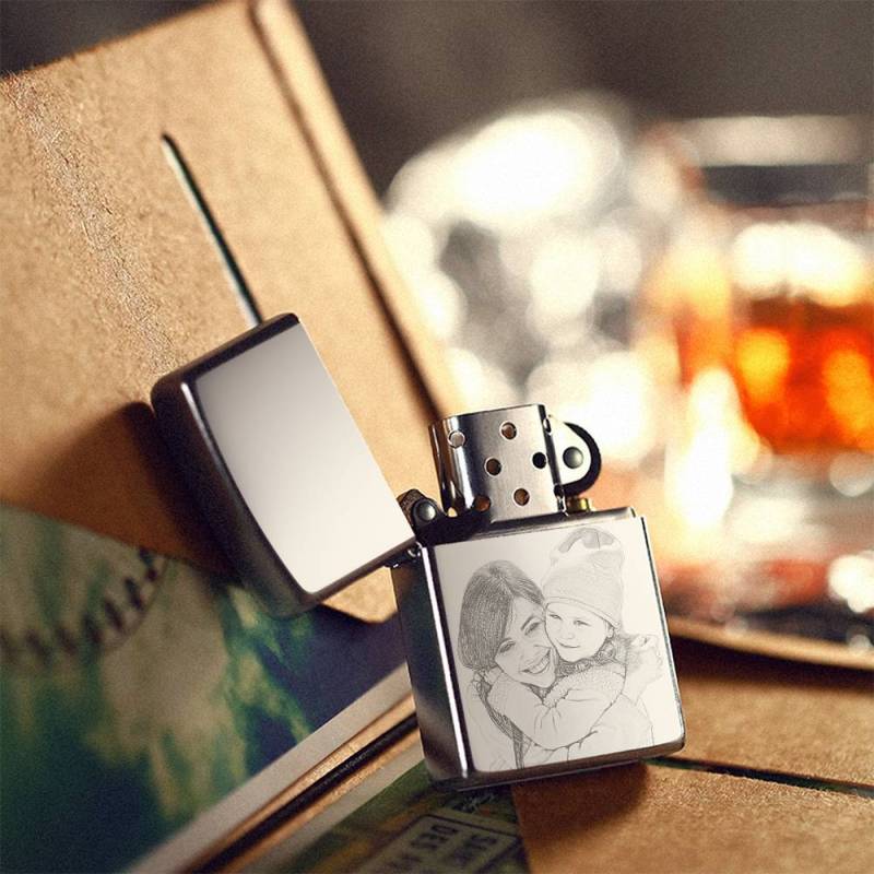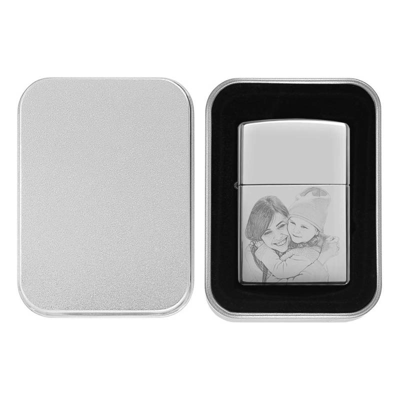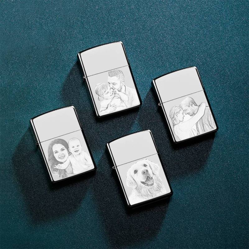 Creative Photo Engraved Lighter Personalized Gifts - Silver (No Kerosene Included)