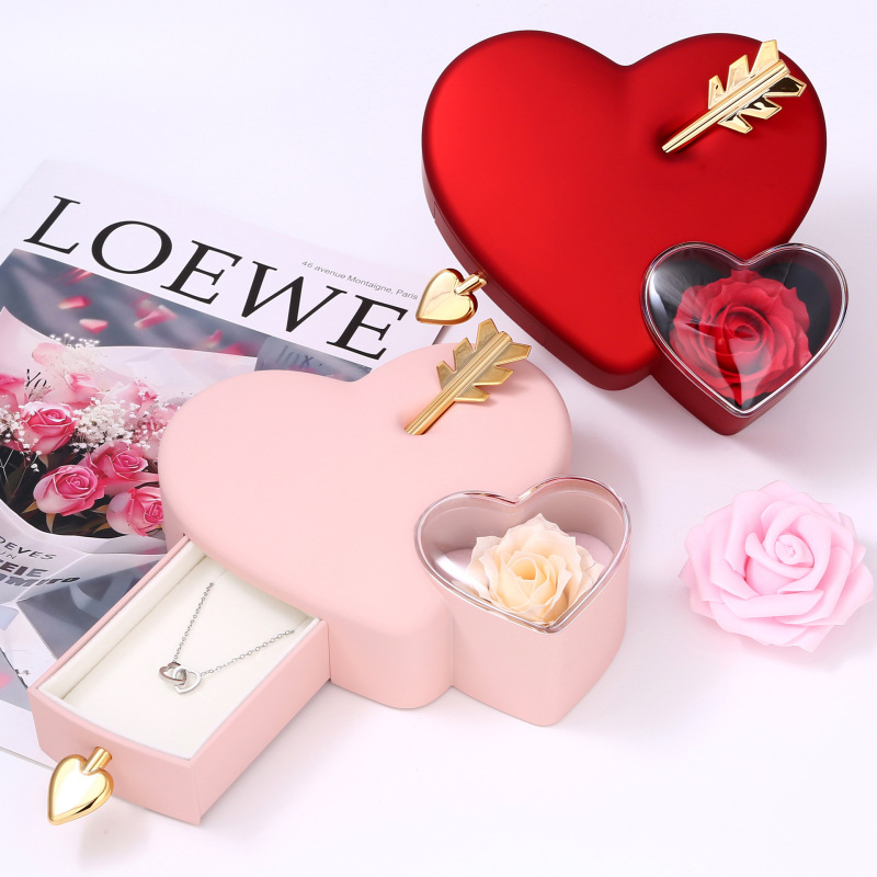 Cupid Arrow Heart Gift Box with Necklace & Romantic Red Heart Jewelry Box for Her