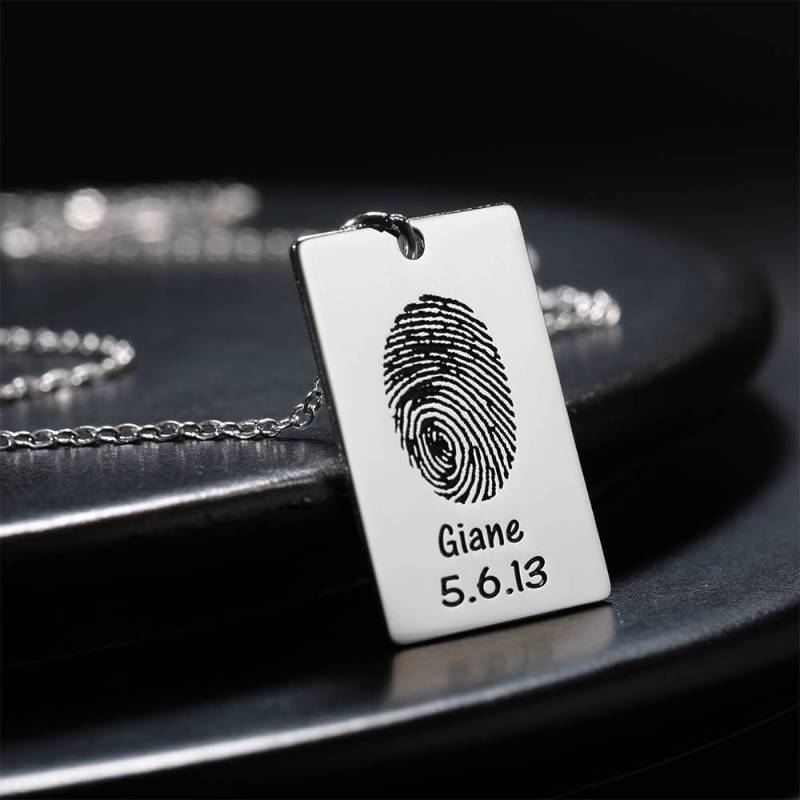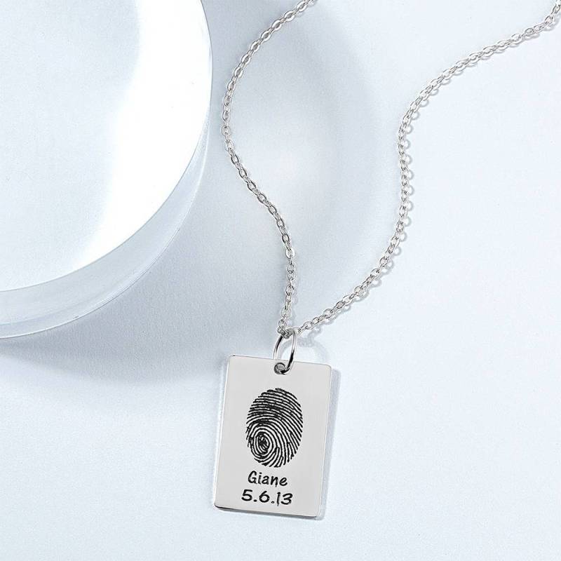 Custom Actual Fingerprint Engraved Photo Necklace Copper in Silver