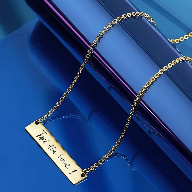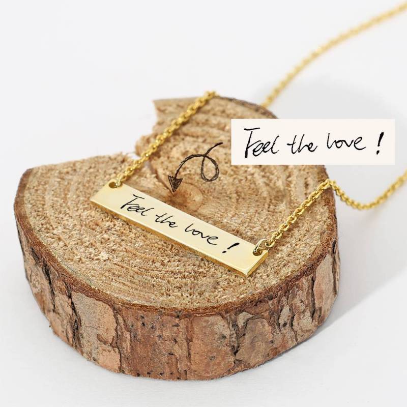 Custom Actual Handwriting Photo Necklace, Engraved Handwriting Bar Necklace Copper in 14k Gold Plated