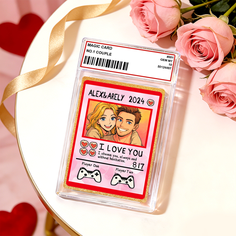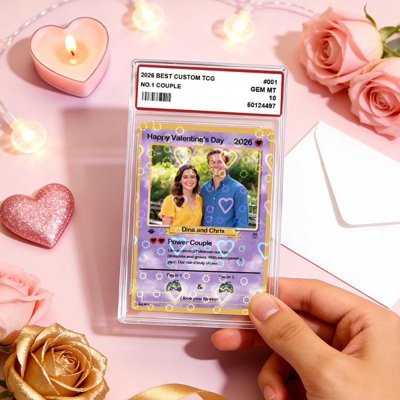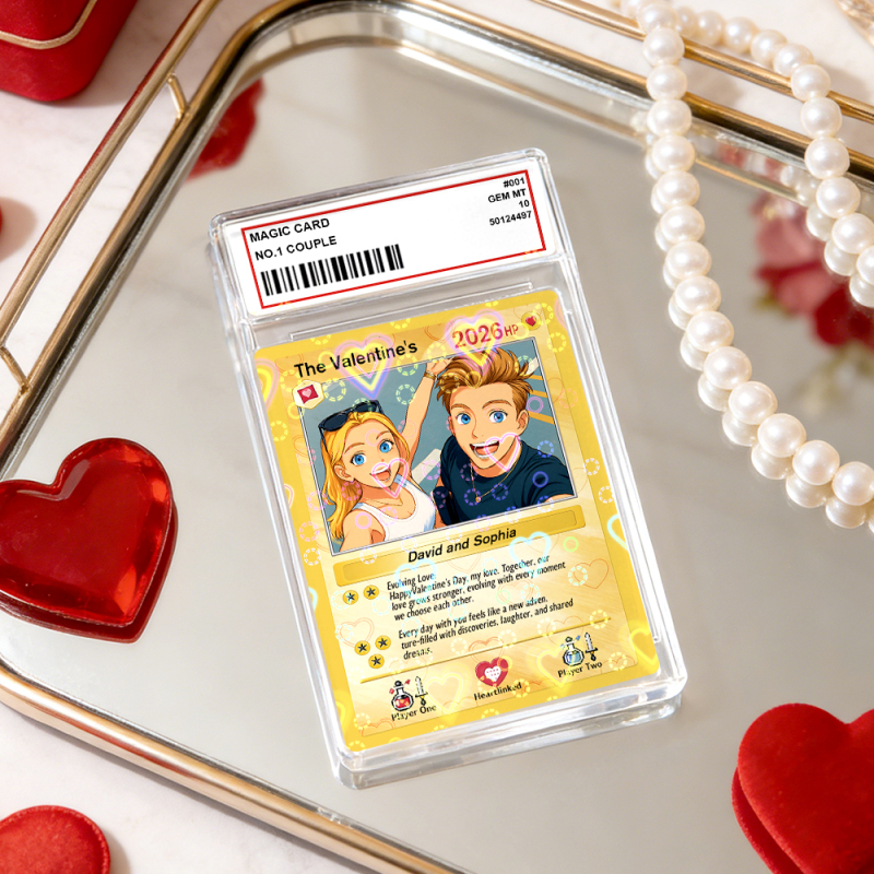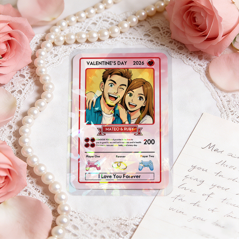 Personalized Valentine’s Day Power Couple Card, Custom Anniversary Card Couple Photo Anime Style, Best Valentine's Day Gift for Lover