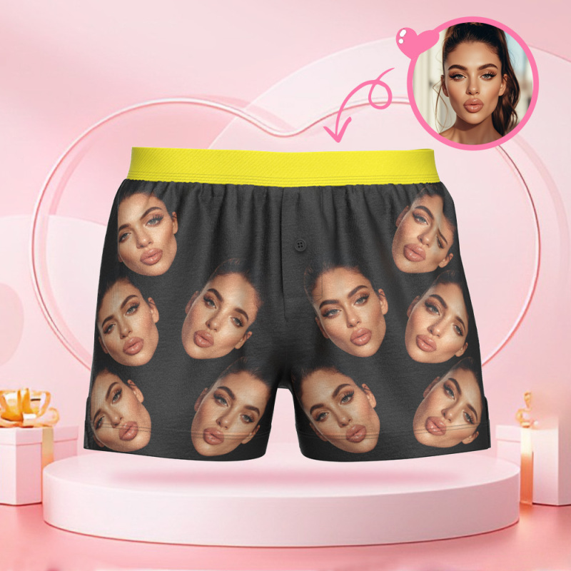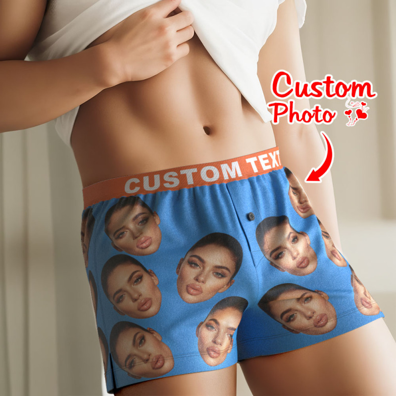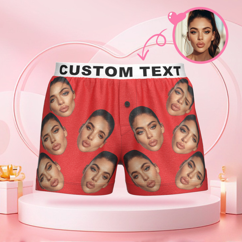 Custom Big Face Boxer Shorts with Personalized Text on the Waistband Personalized Casual Underwear for Him