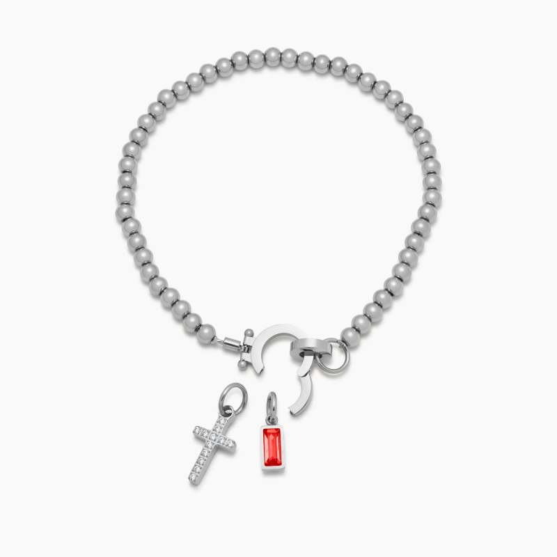 Custom Birthstone Cross Charm Bracelet Personalized Birthstone Charm Bracelet Delicate Beaded Faith Bracelet Birthday Gifts for Her