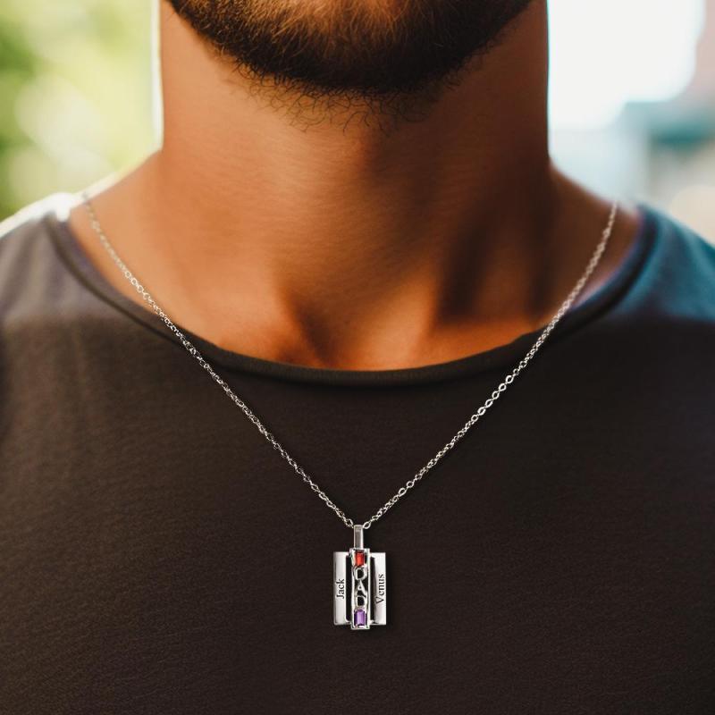 Custom Birthstone DAD Necklace Engraved Fashionable Jewelry Father's Day Gift