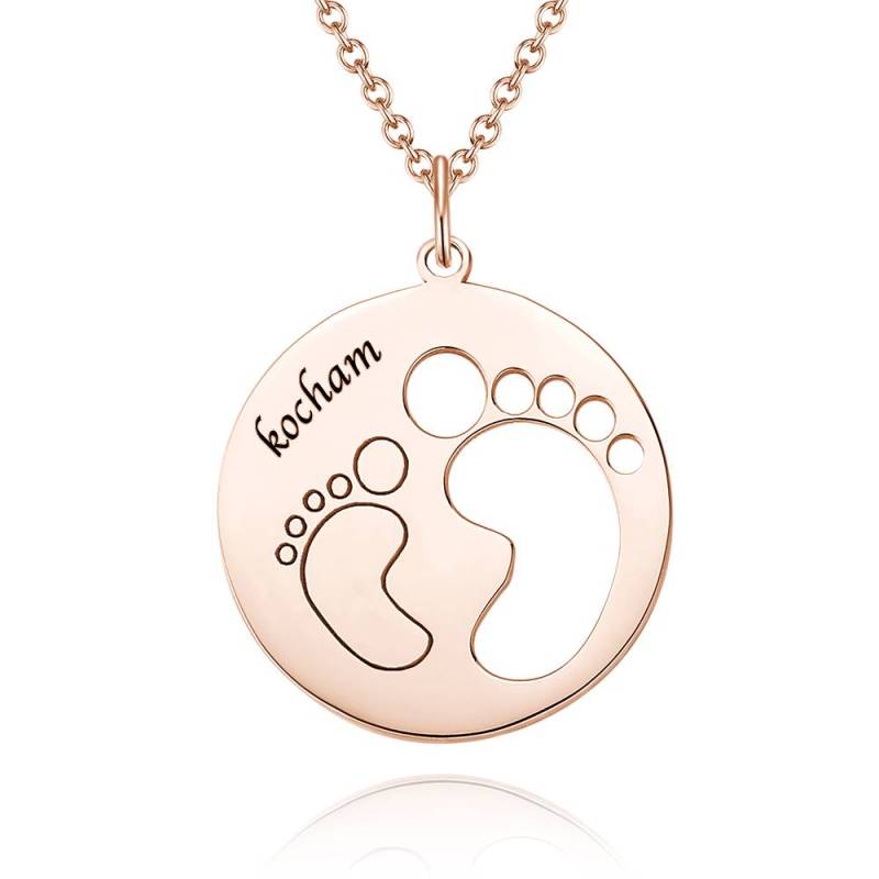 Custom Baby Footprints, Engraved Necklace 14K Gold Plated