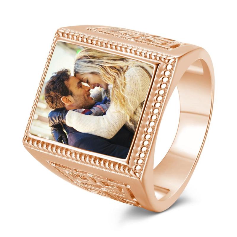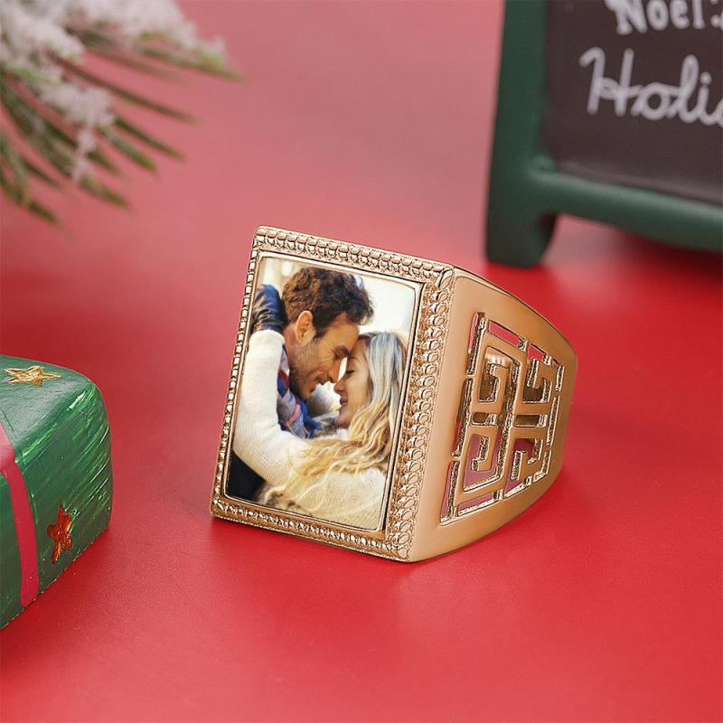 Custom Mother's Gifts Photo Ring Square Photo 14K Gold Plated