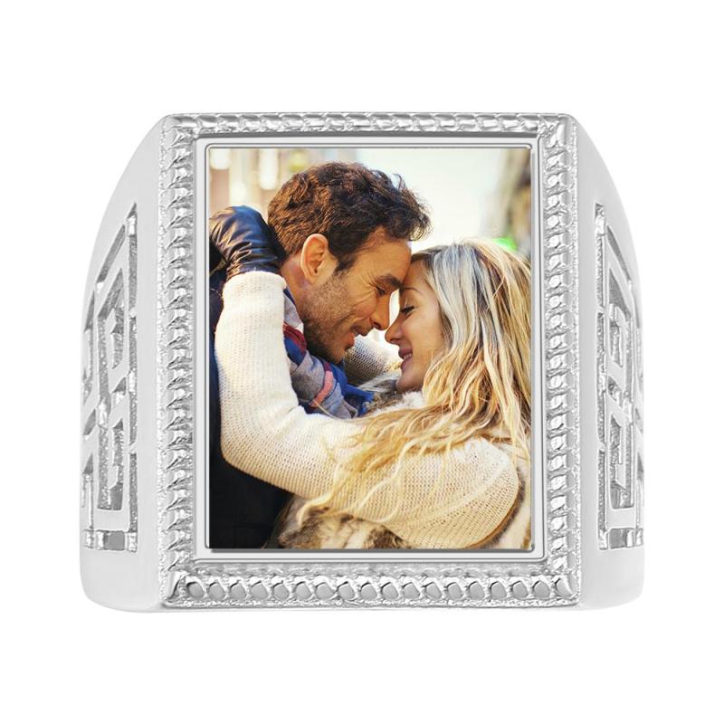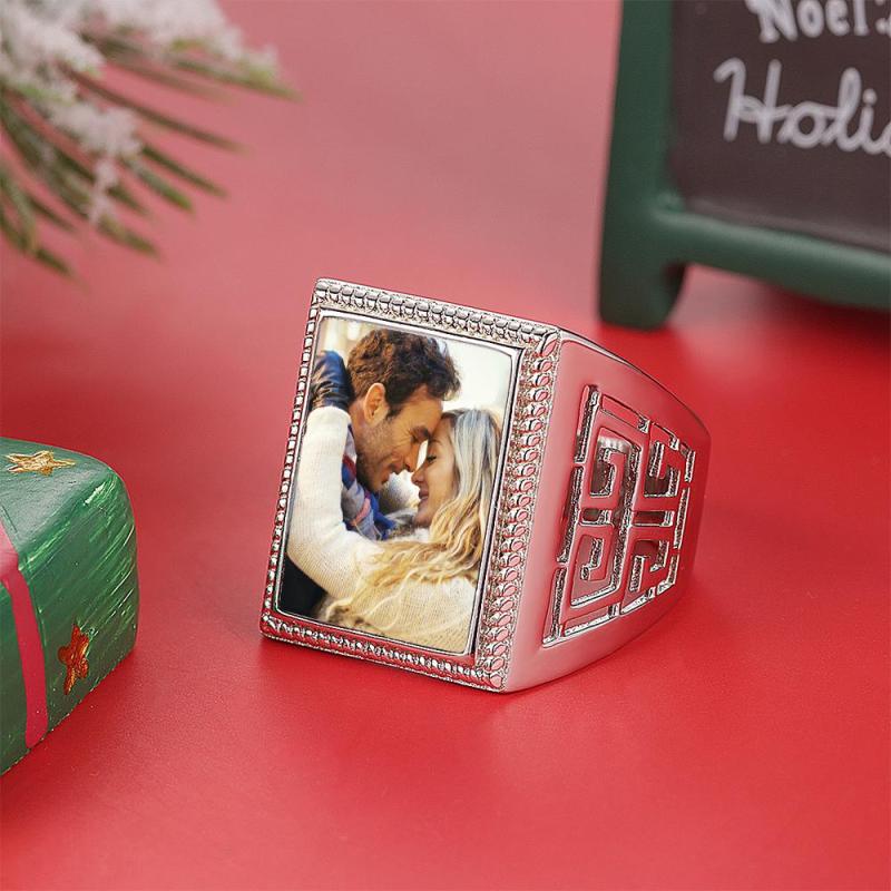 Custom Mother's Gifts Photo Ring Square Photo Platinum Plated