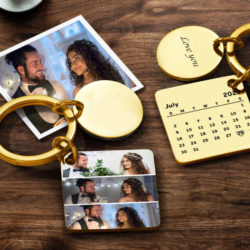 Custom Collage Photo Calendar Keychain Anniversary Wedding Gift for Her/Him 4 Colors