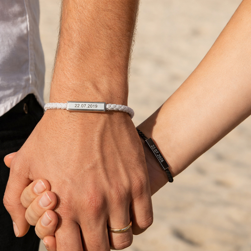 Custom Couple Bracelet with Engraved Date & Personalized Engrave Your Special Day Anniversary Gift