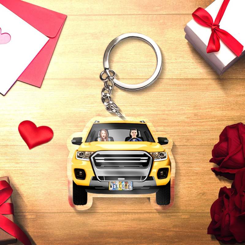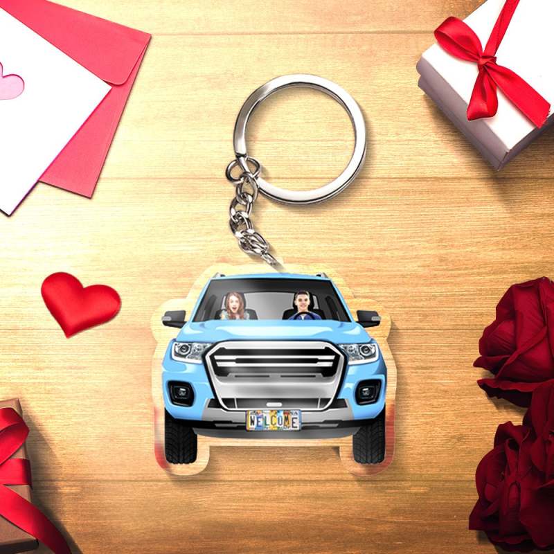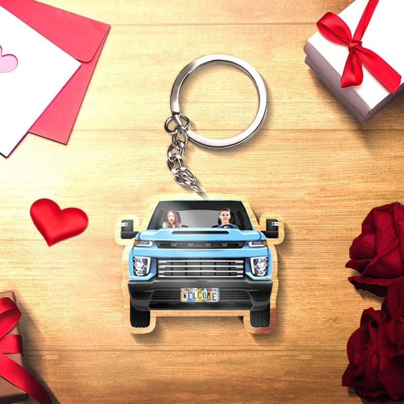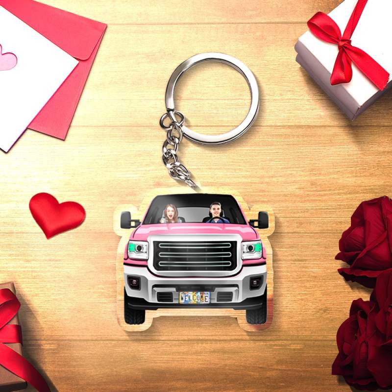 Custom Couple Face Keychain Car Keychain Valentine'S Day Gift for Her