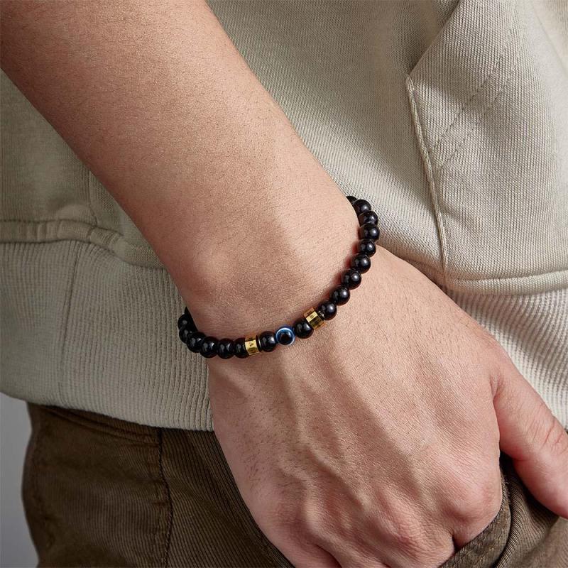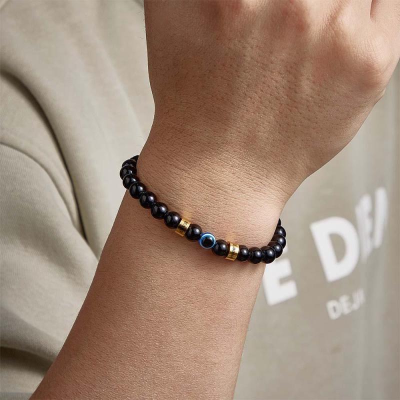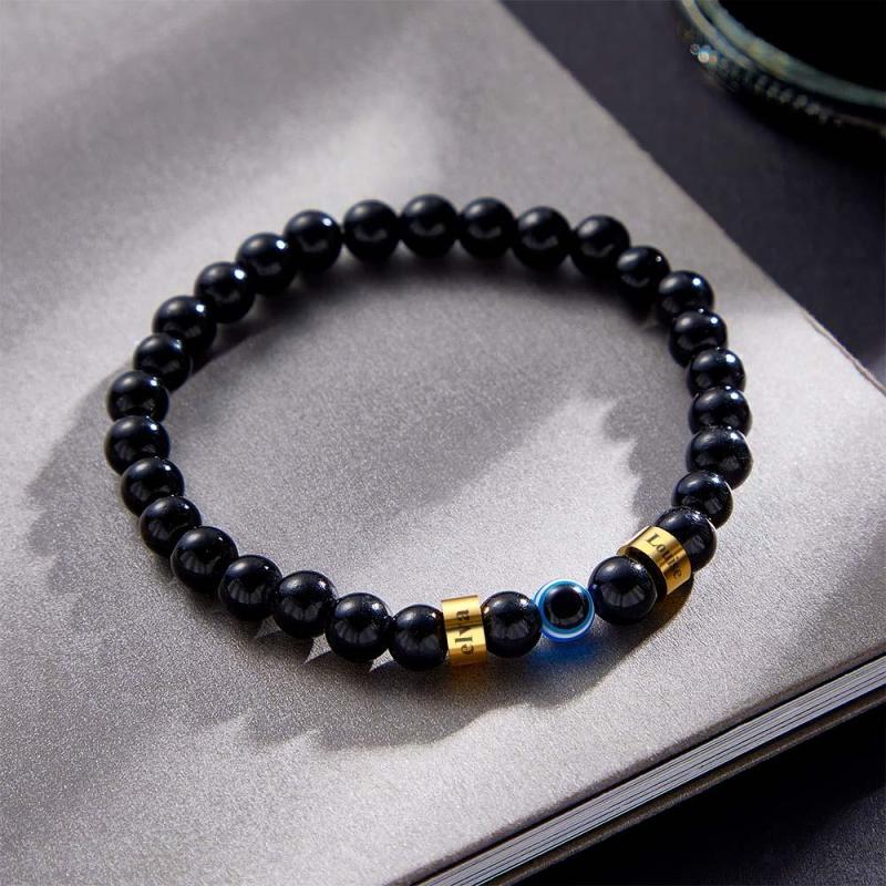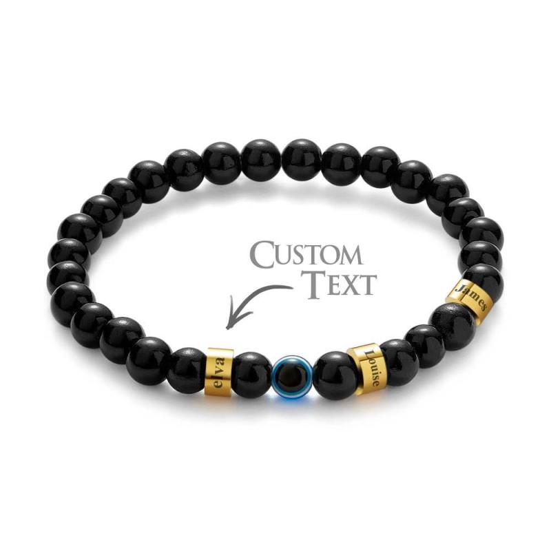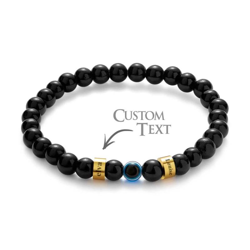 Custom Engraved Beaded Bracelet Evil Eye Men's Amulet Bracelet