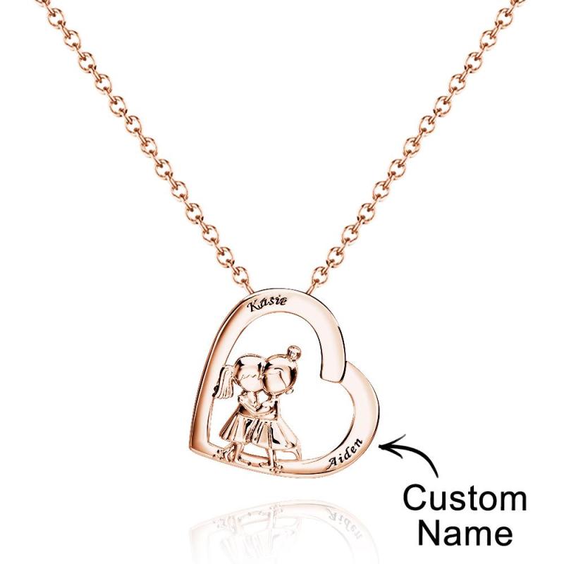 Custom Engraved Best Friends Necklace Personalized Heart Pendant Necklace Gifts For Her