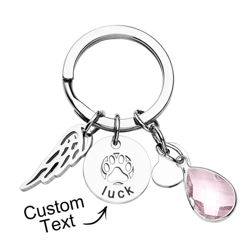 Custom Engraved Birthstone Keychain Memorial Gift for Pet Lover
