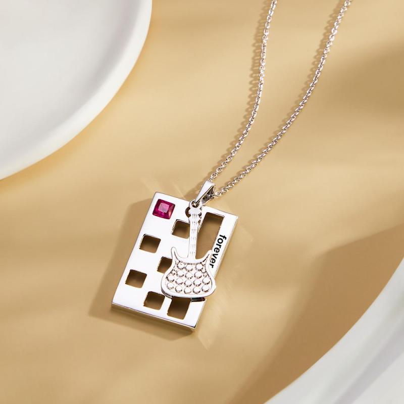 Custom Engraved Birthstone Necklace Forever Love Guitar Music Gifts