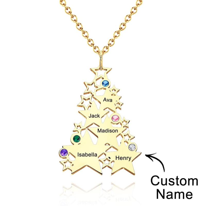 Custom Engraved Birthstone Necklace Star Christmas Tree Gifts