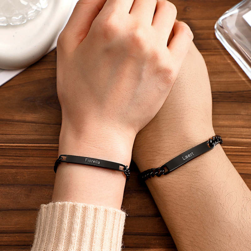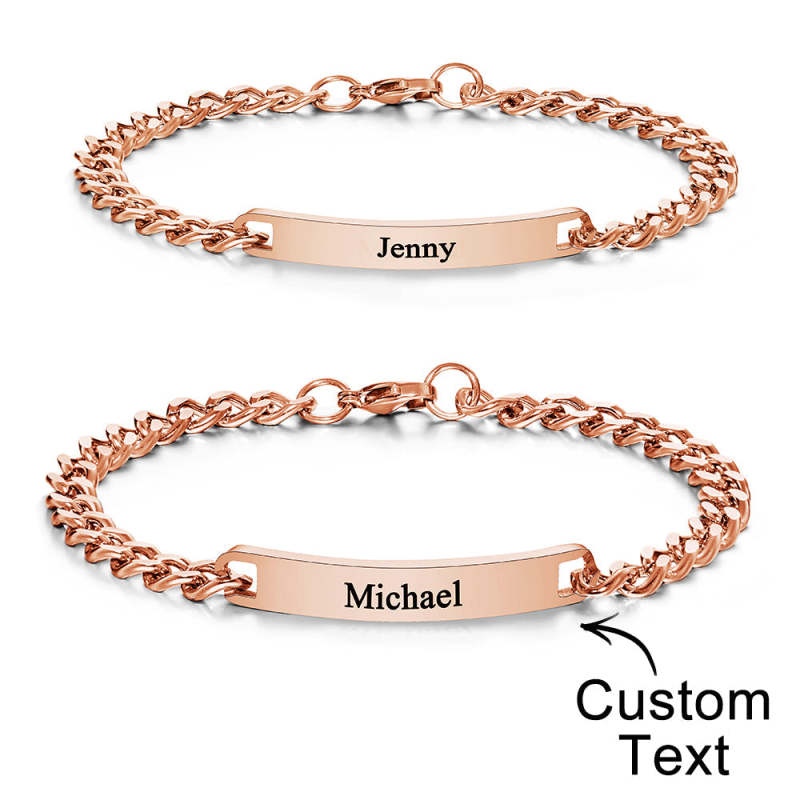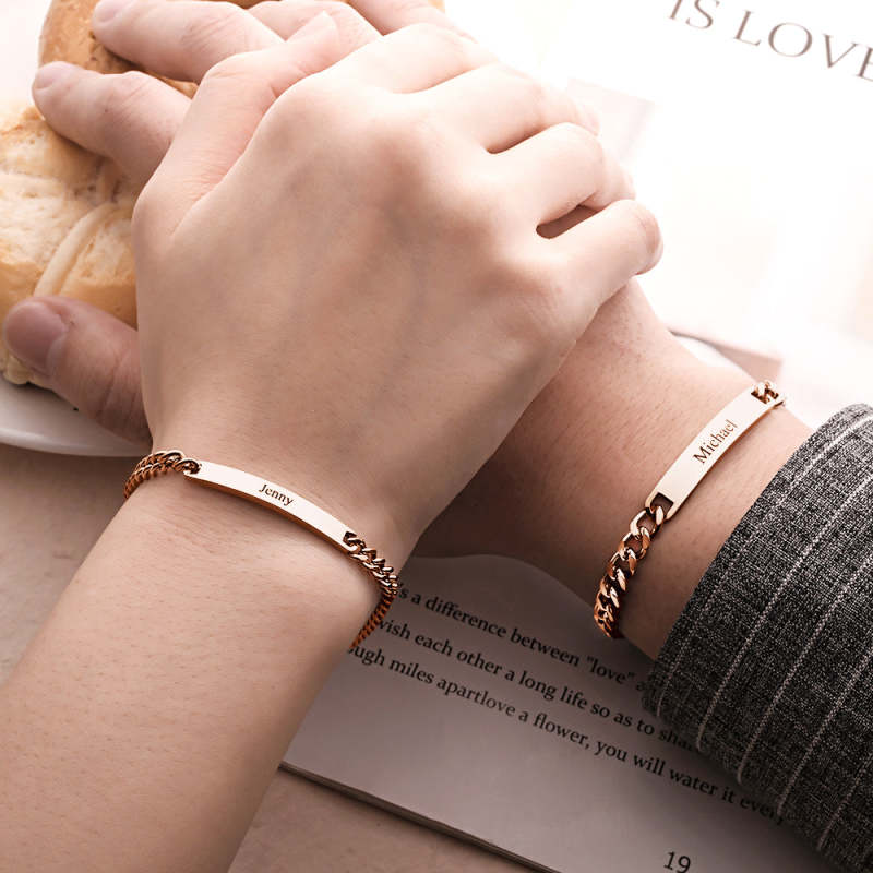 Custom Engraved Bracelet Chain Set Personalized Trendy Bracelet For Couples Valentine Gifts