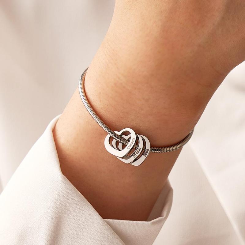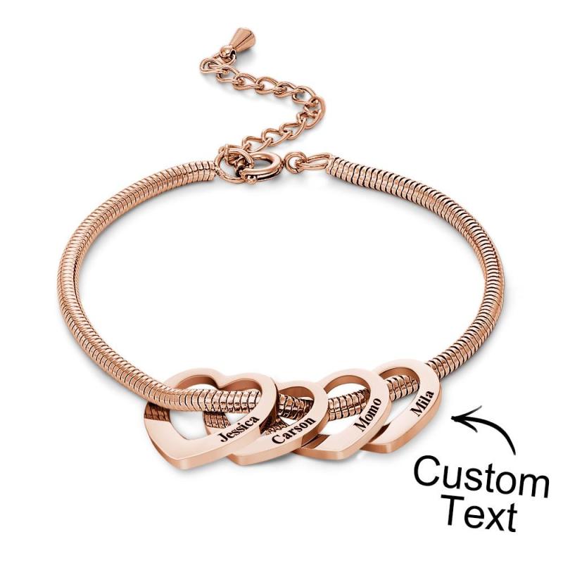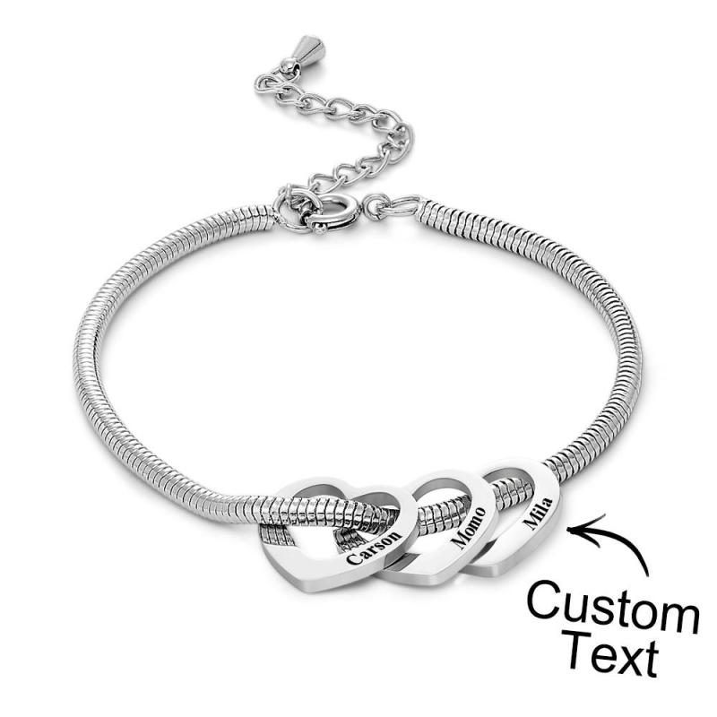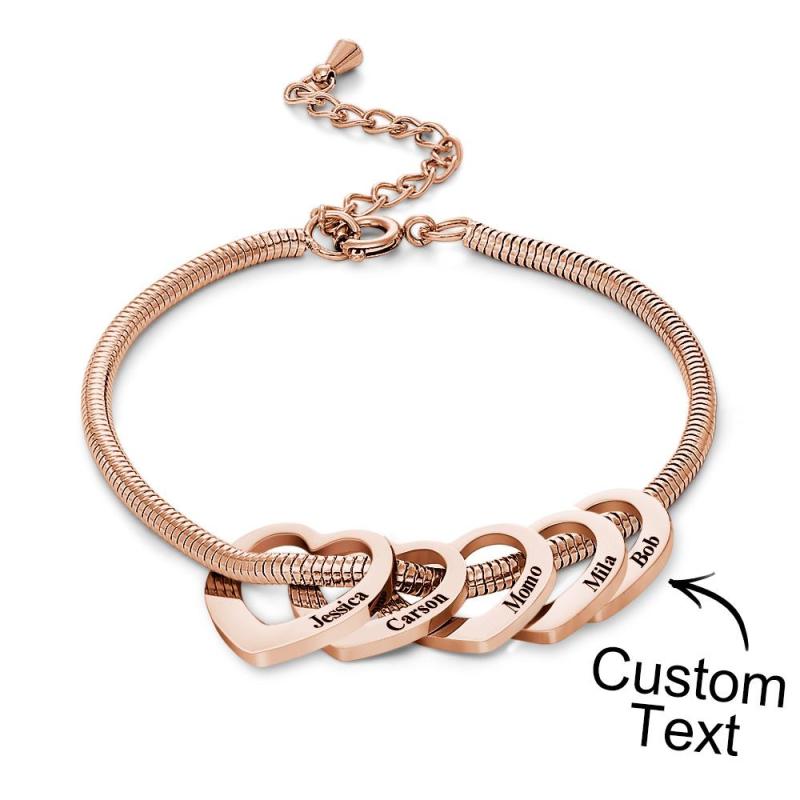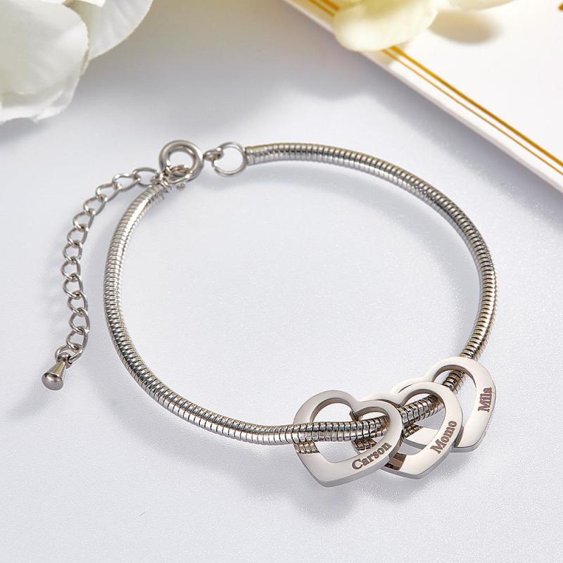 Custom Engraved Bracelet Custom Mom and Kids Name Heart Charms Gifts