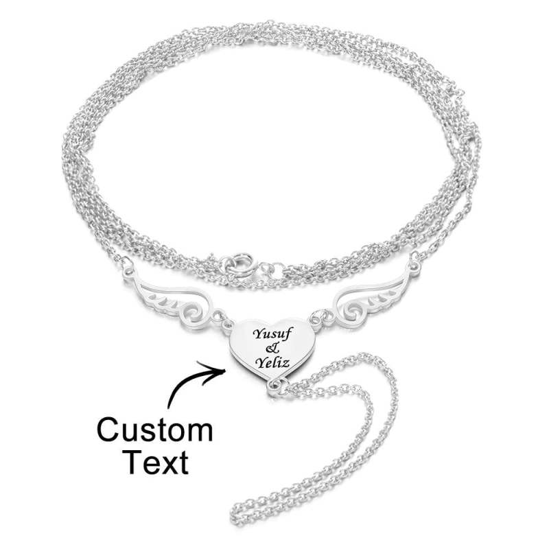 Custom Engraved Bracelet Heart Shaped Wings Bracelet Unique Gift for Women