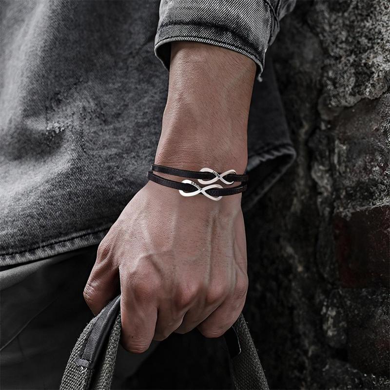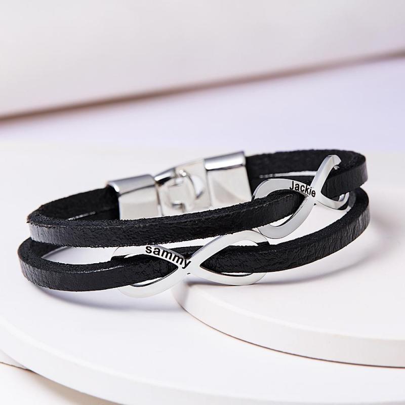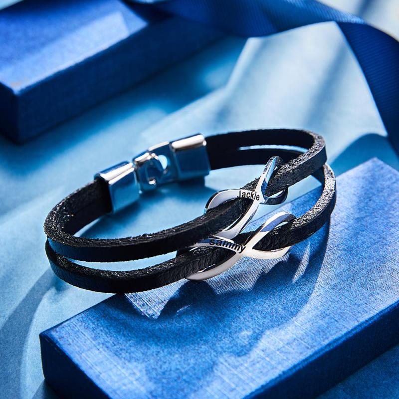 Custom Engraved Bracelet Infinity Symbol Leather Men's Gifts