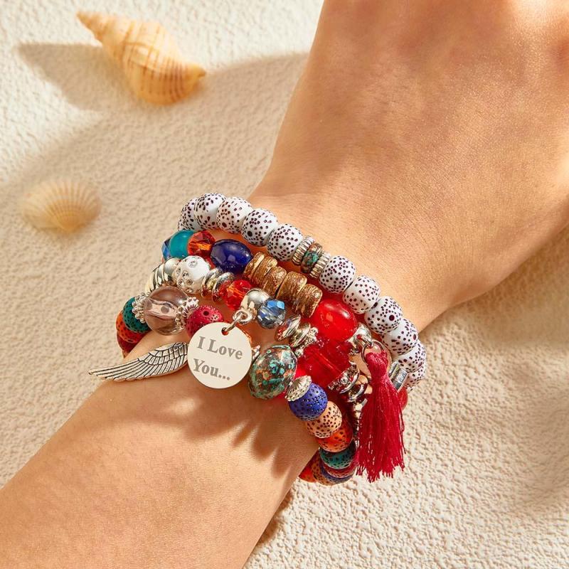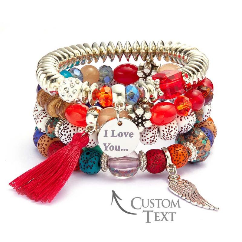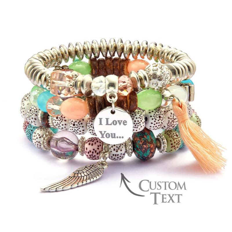 Custom Engraved Bracelets Bohemia Style Bead Gifts for Girl