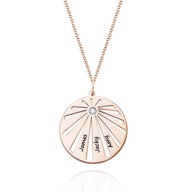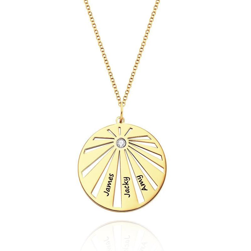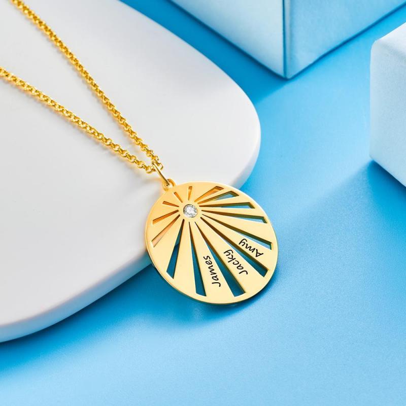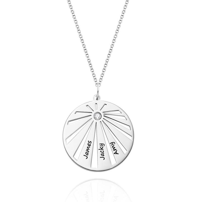 Personalized Engraved Circle Necklace Platinum Plated Pendant Gifts For Family
