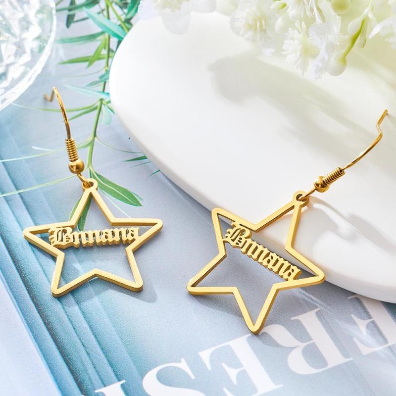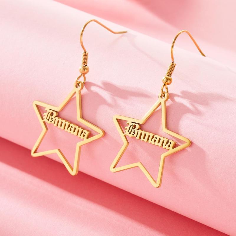 Custom Engraved Earrings Anti-oxidation Stainless Steel Star-shaped For Her