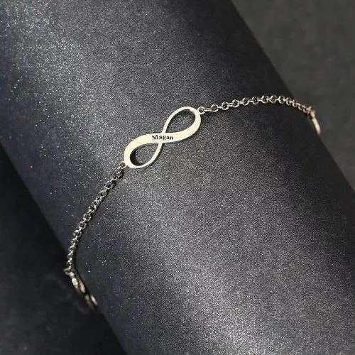 Custom Engraved Infinity Name Anklet Silver