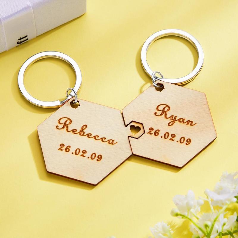 Custom Engraved Keychain Heart-shaped Hollow Splicing Couple Keychains A Pair Of Gifts