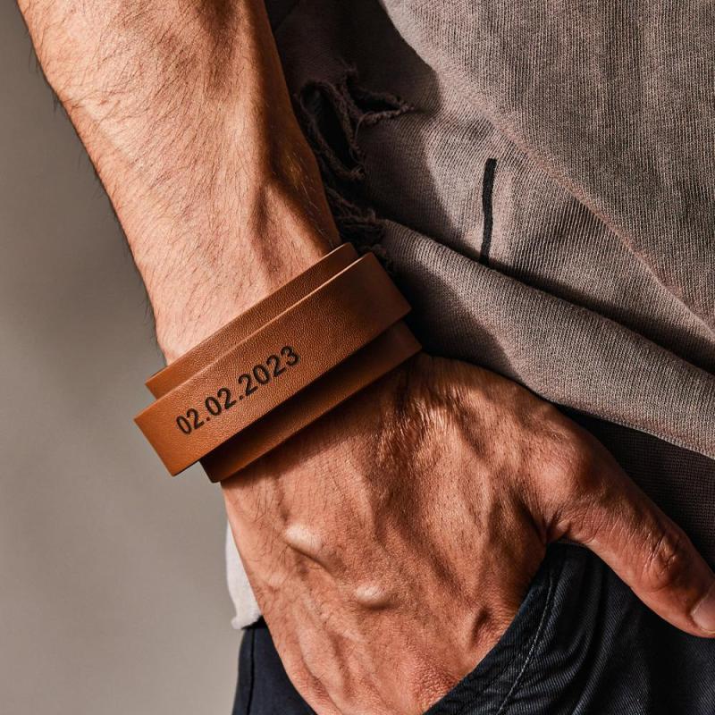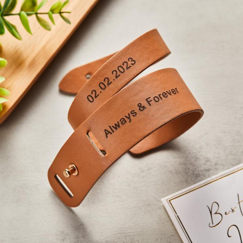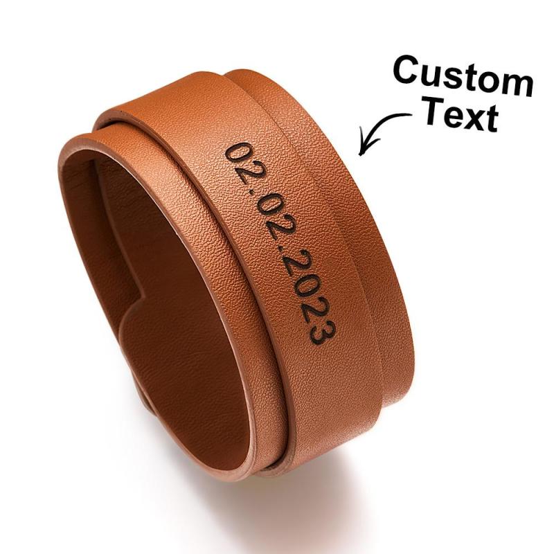 Custom Engraved Leather Bracelet Personalized Vintage Wrap Adjustable Bracelet Gift For Him