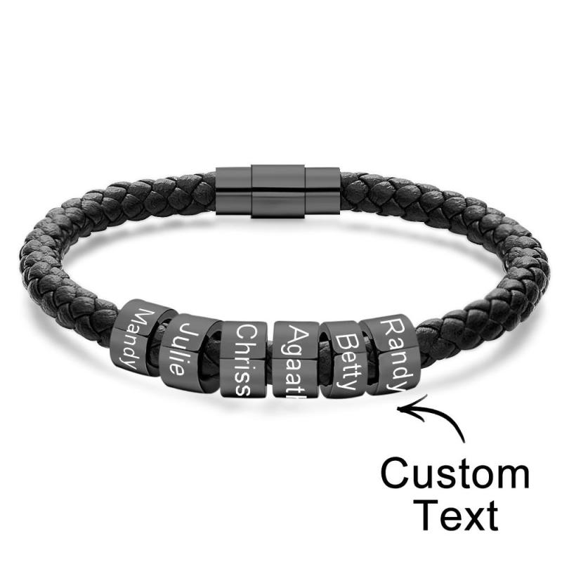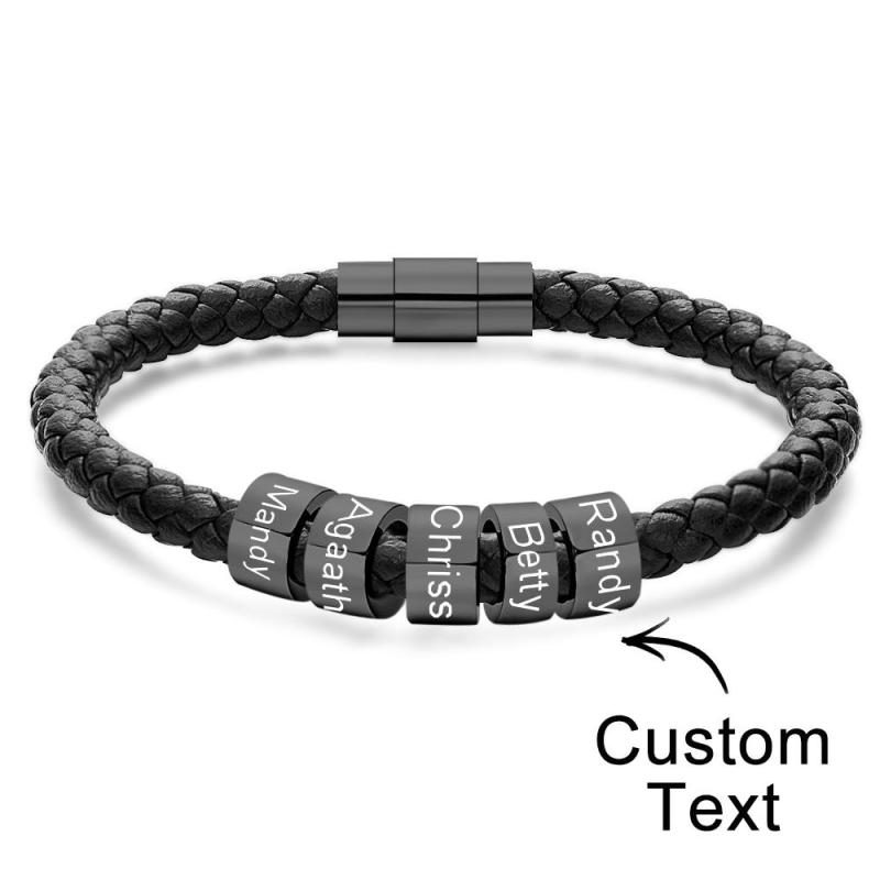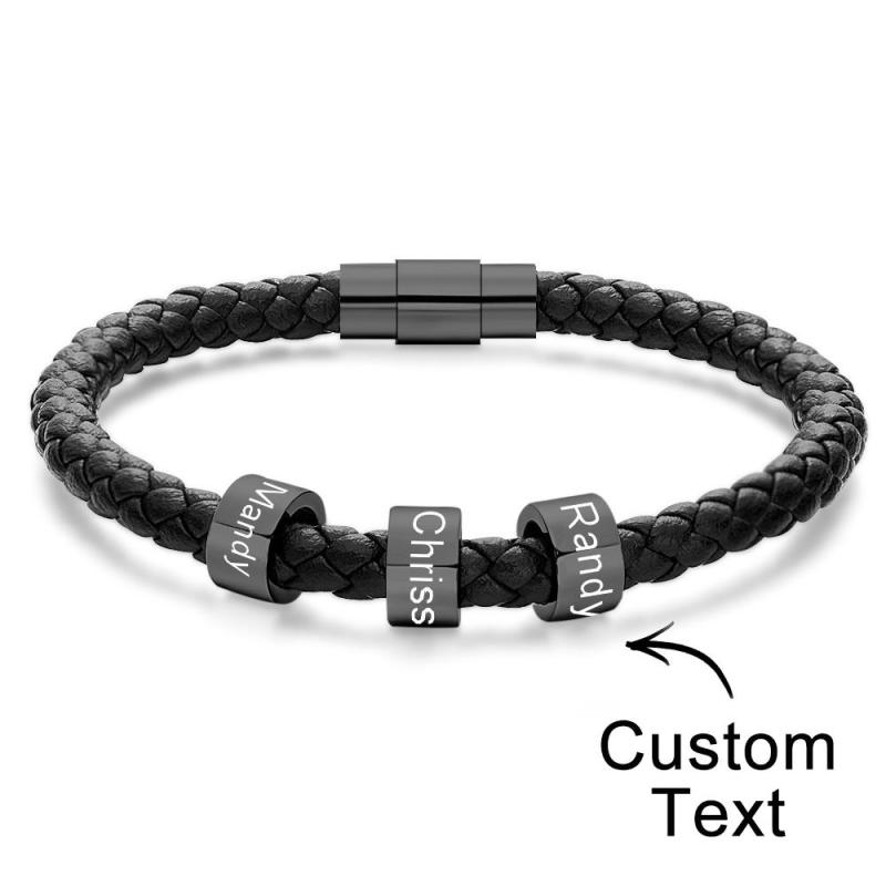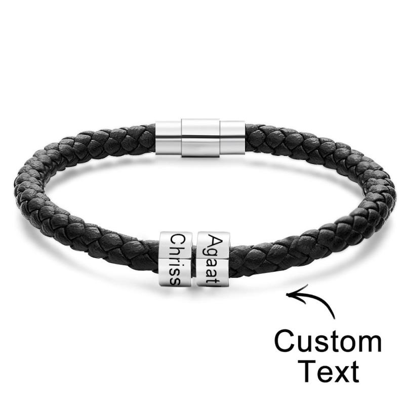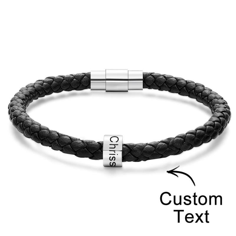 Custom Engraved Men's Bracelets Beads Simple Leather Gifts