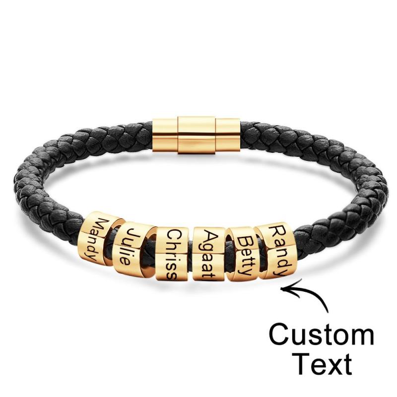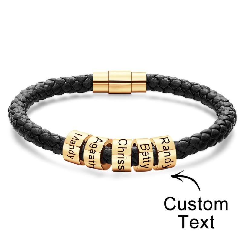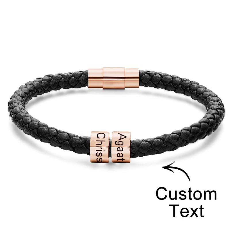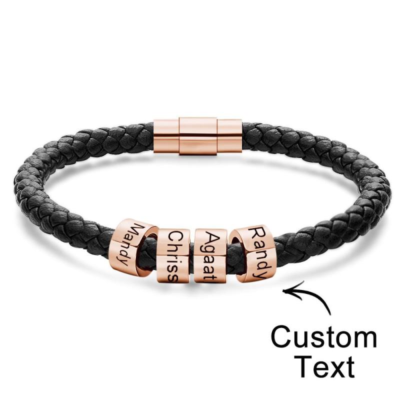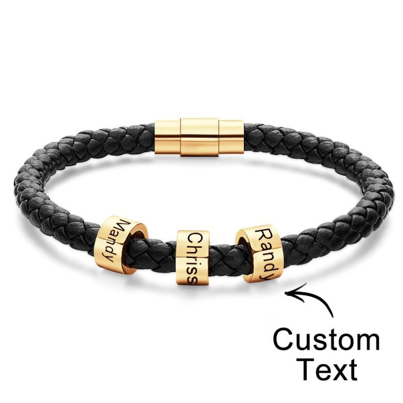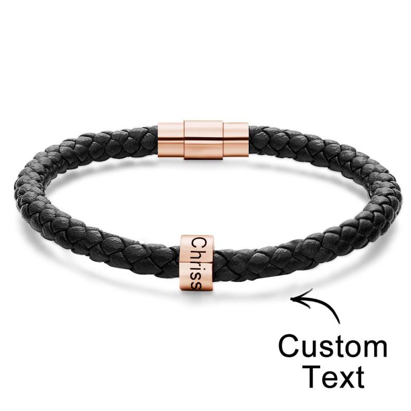 Custom Engraved Men's Bracelets Beads Simple Leather Gifts
